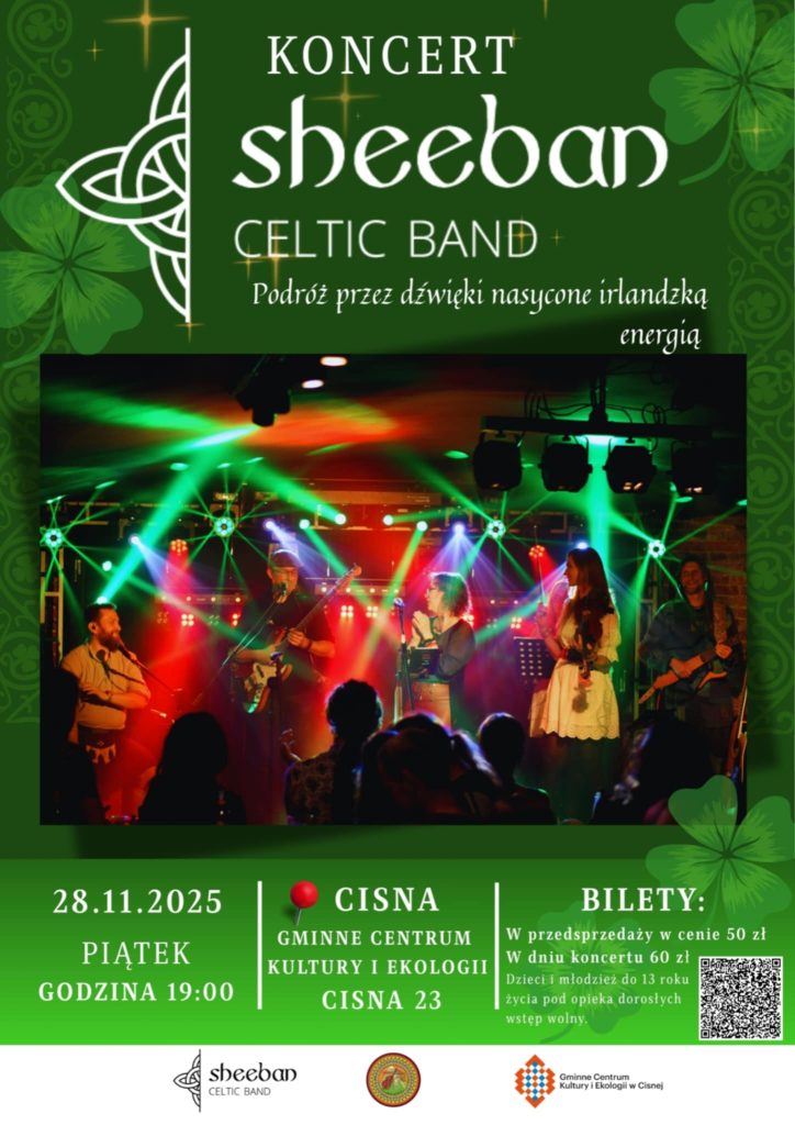 Cisna ma to do siebie, że nawet poza sezonem potrafi przyciągać dobrą energię. Jeśli więc nie macie planów na ostatni weekend listopada, wybierzcie się koniecznie do Gminnego Centrum Kultury i Ekologii. W piątkowy wieczór zagra tam Sheeban Celtic Band, czyli zespół który potrafi porwać publiczność irlandzką energią i mocnym brzmieniem.
